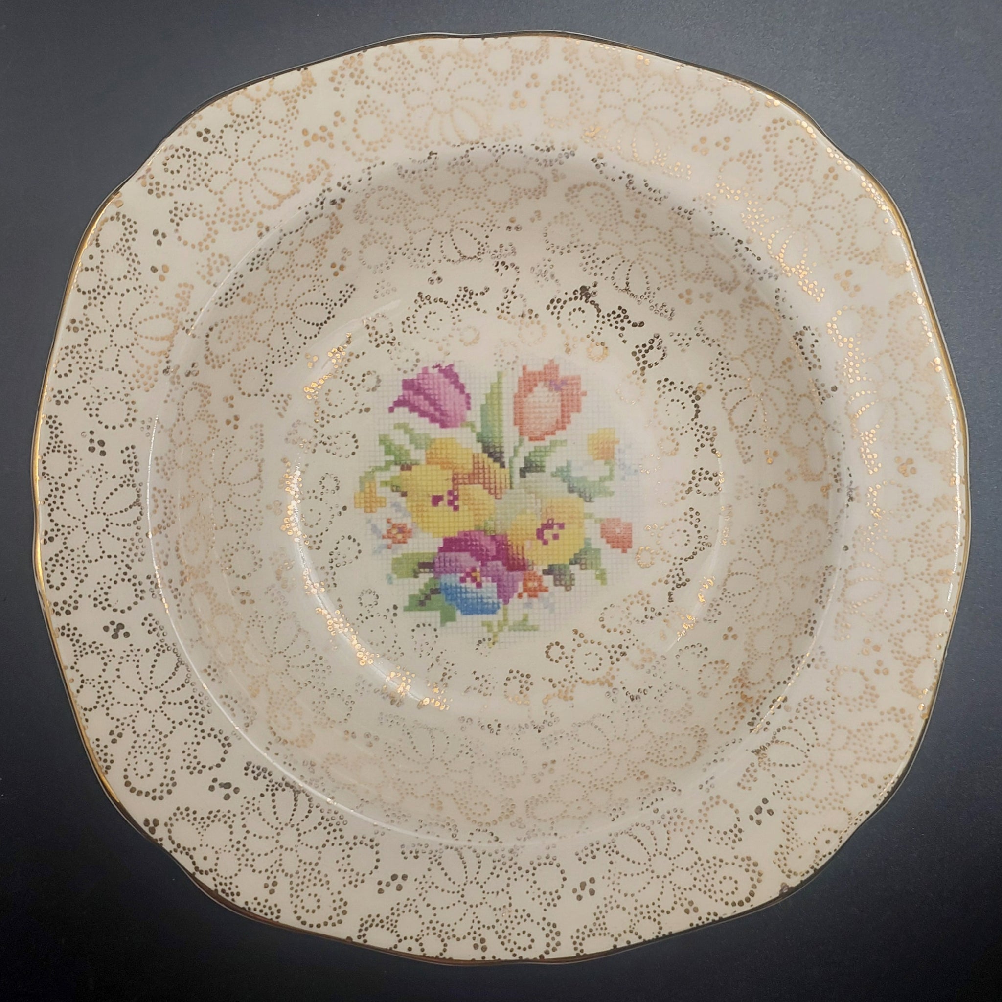 Hollinshead & Kirkham - Old English Sampler, Circle Filigree - Breakfast/Dessert Bowl
