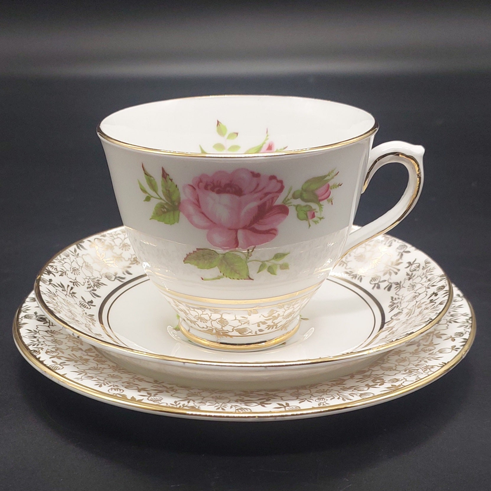 Phoenix - Pink Roses and Gold Filigree Band - 20-piece Tea Set