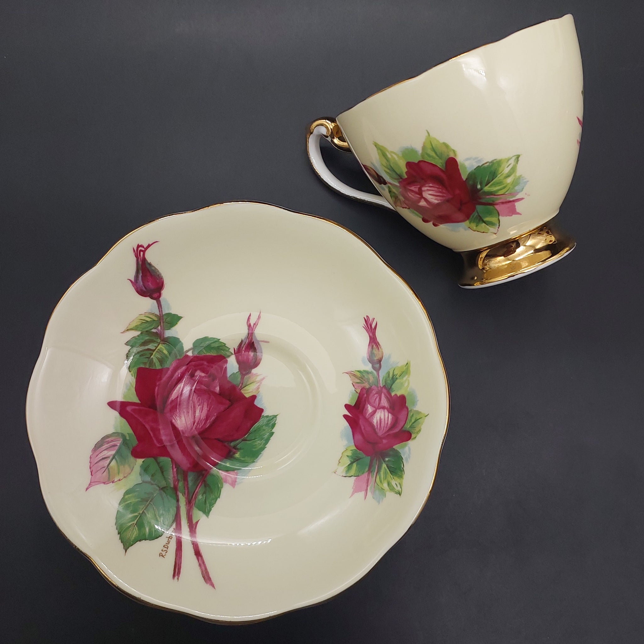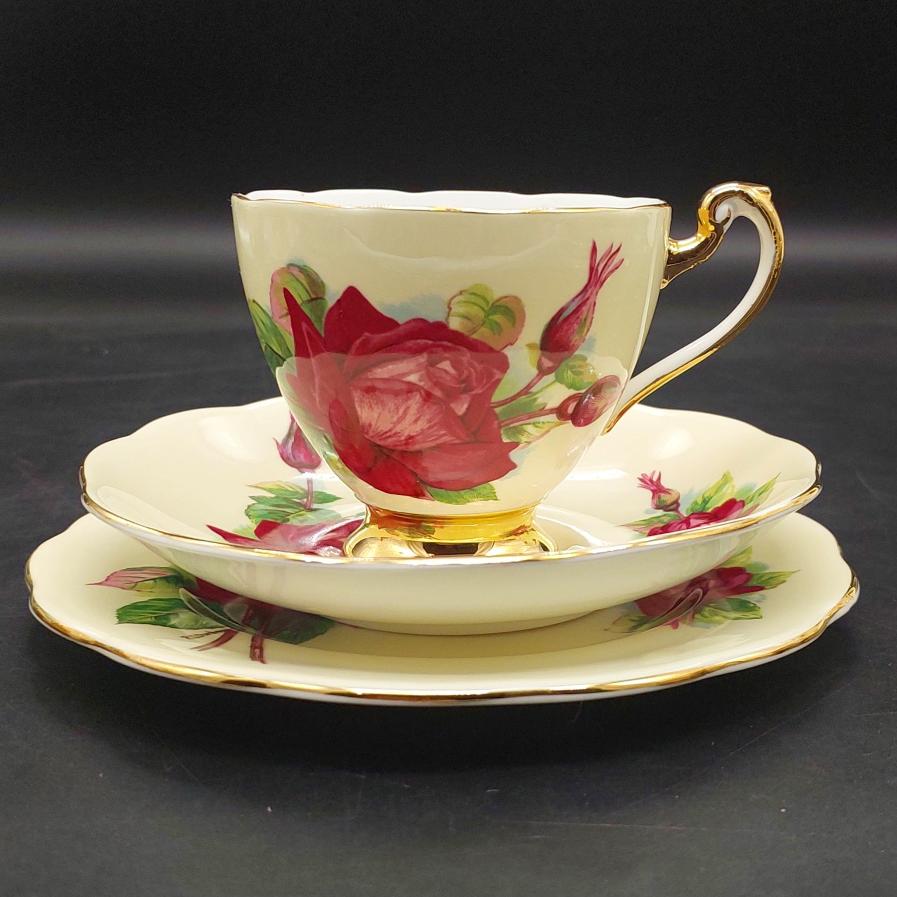 Roslyn - Wheatcroft Roses, No 2 Grand Gala on Cream - Trio