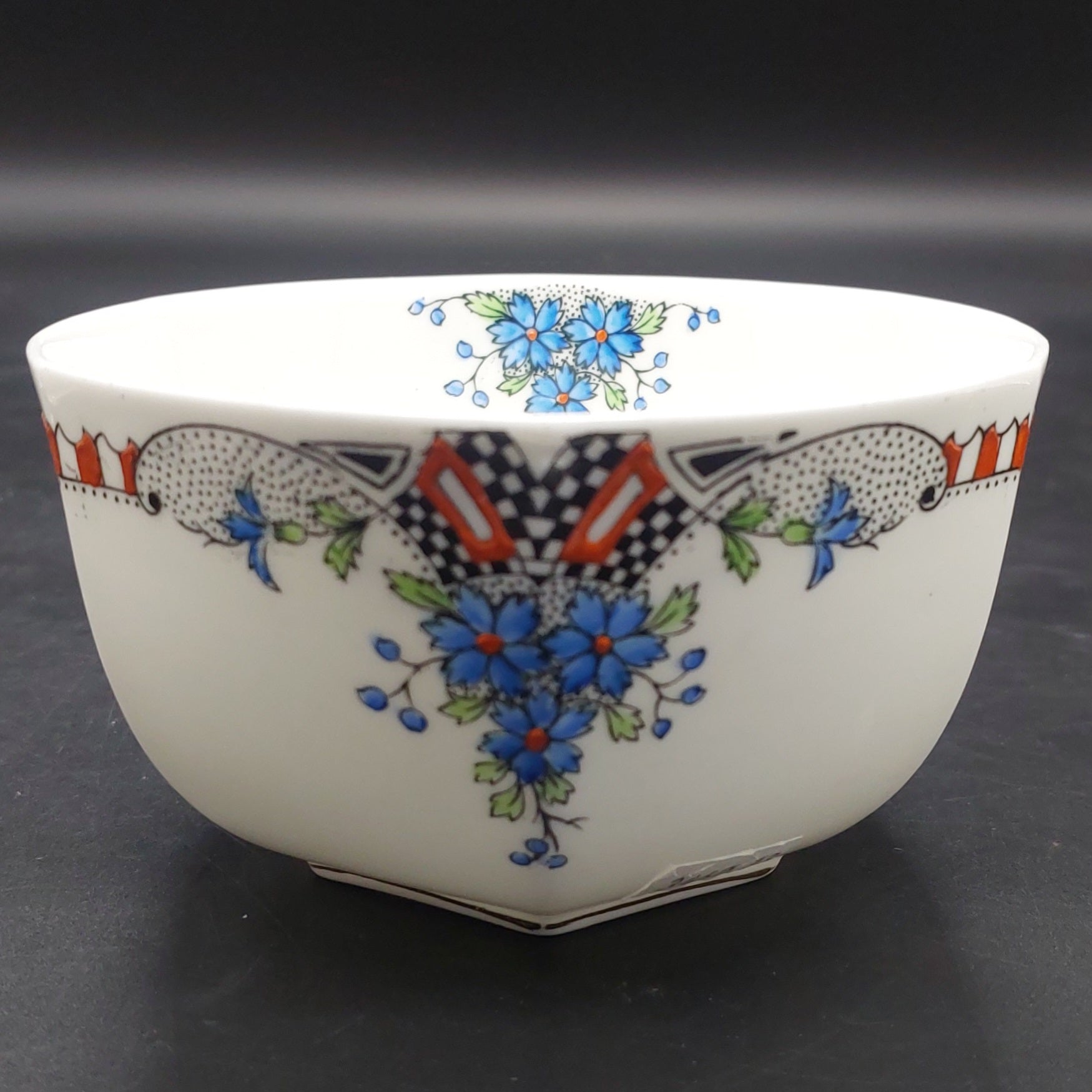 Royal Albert - Blue Flowers, Black and Red Border -Sugar Bowl