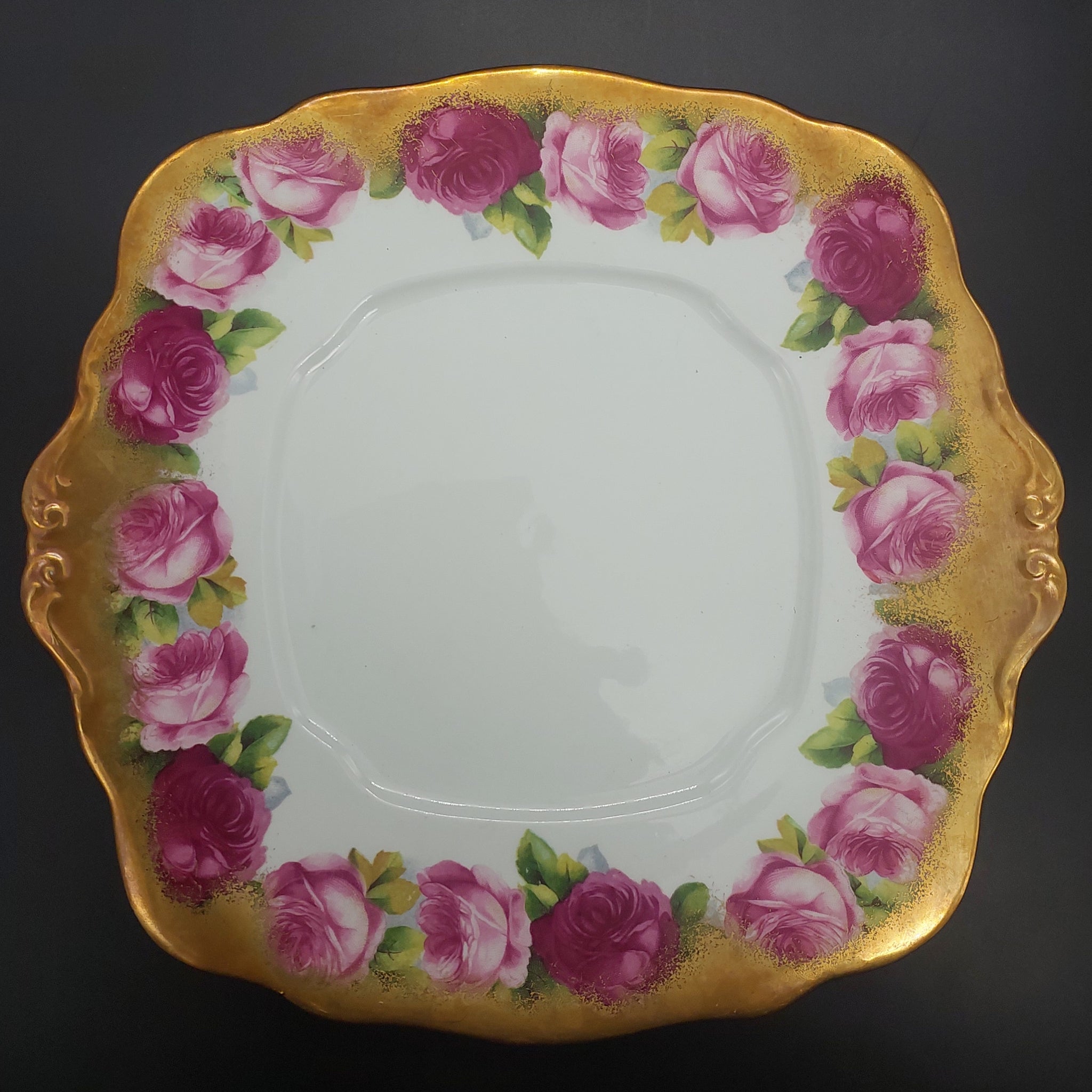 Royal Albert - Old English Rose 2735, Heavy Gold Rim - Square Cake Plate