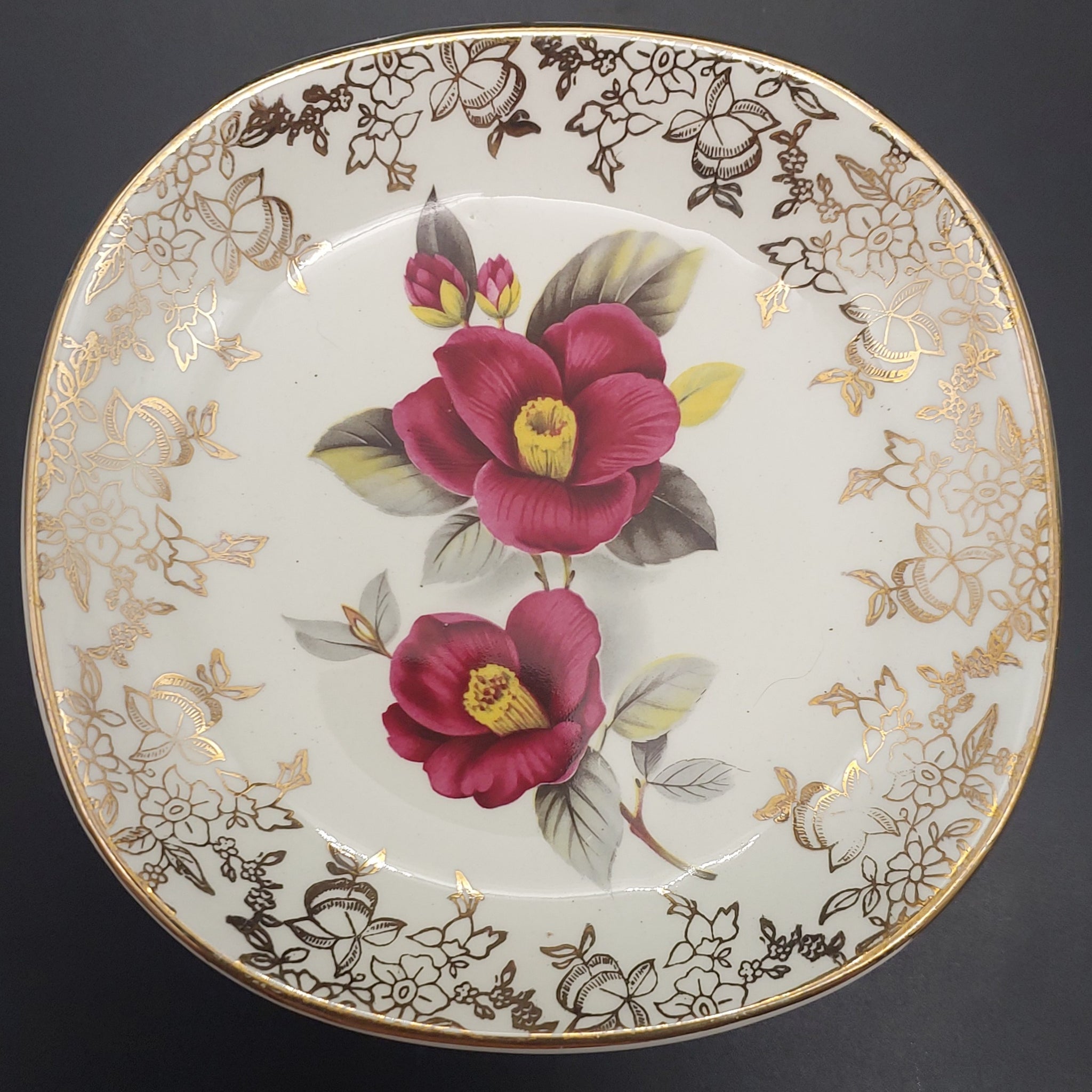 Weatherby Falcon Ware - Maroon Roses, Gold Filigree - Small Dish