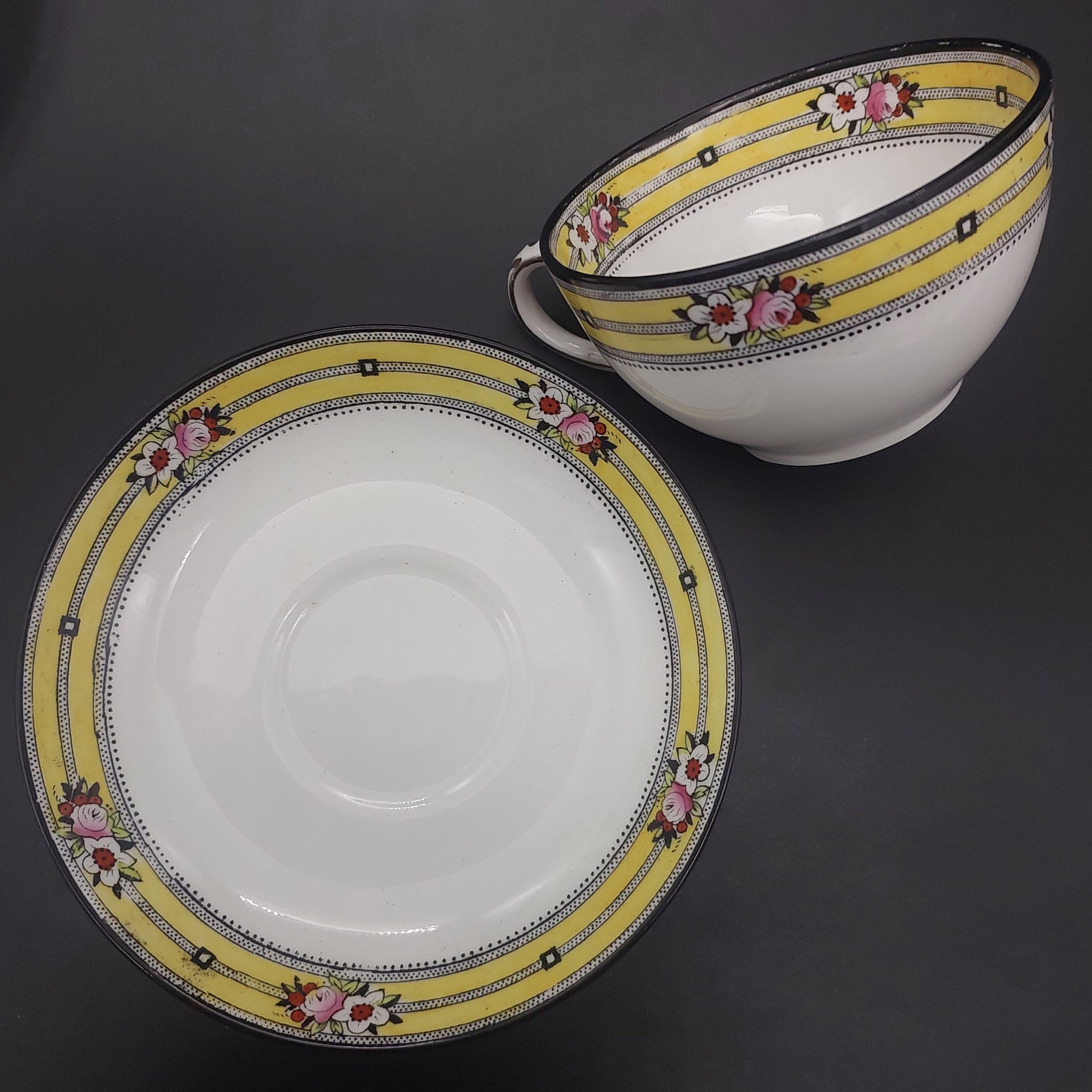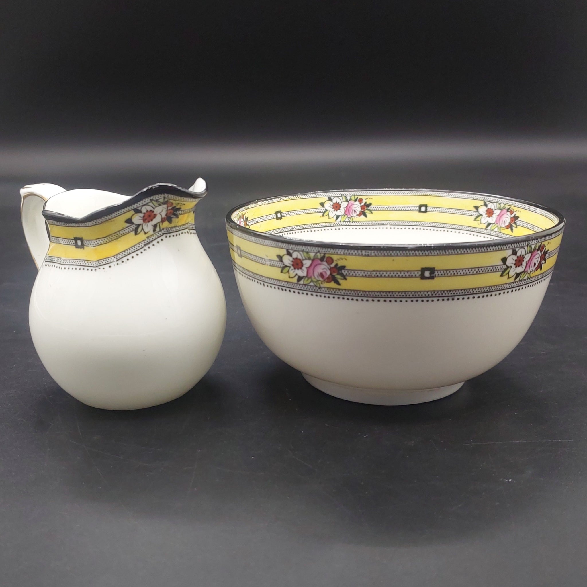 Bishop & Stonier - Flowers on Yellow and Black Band - Tea Set