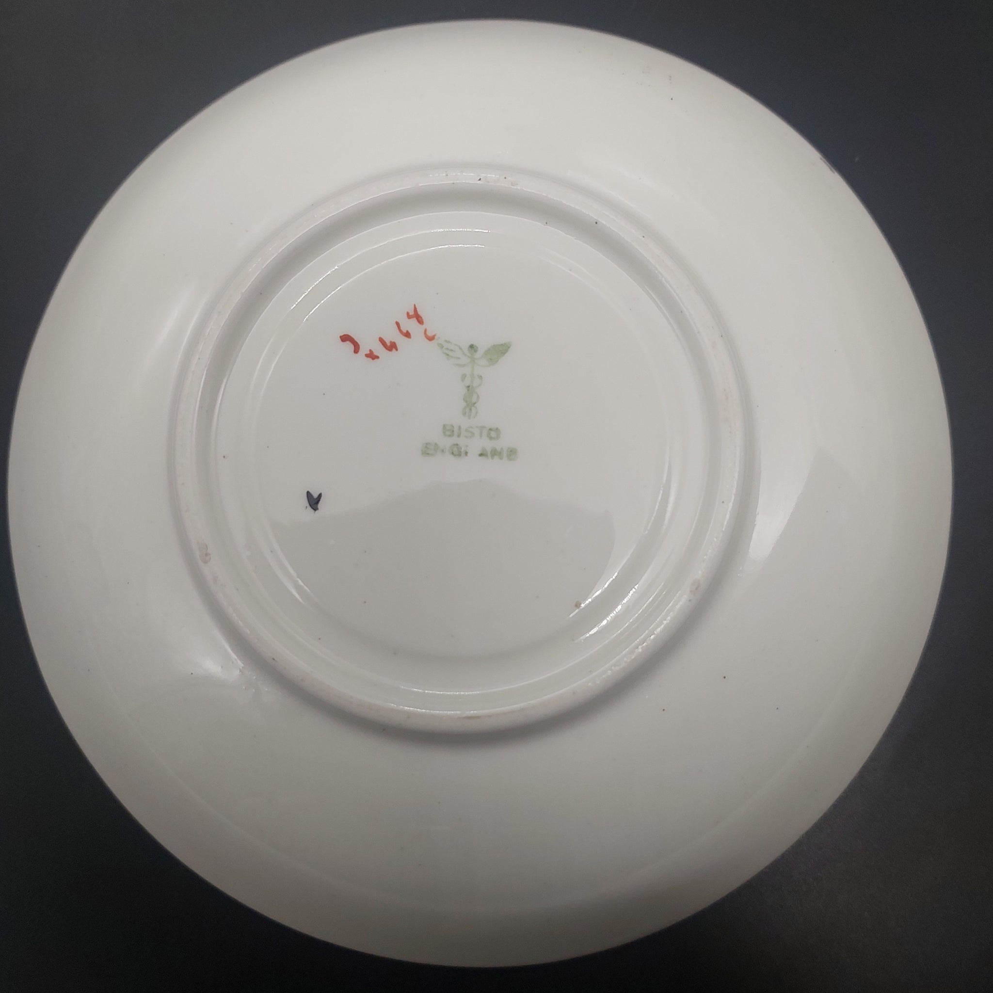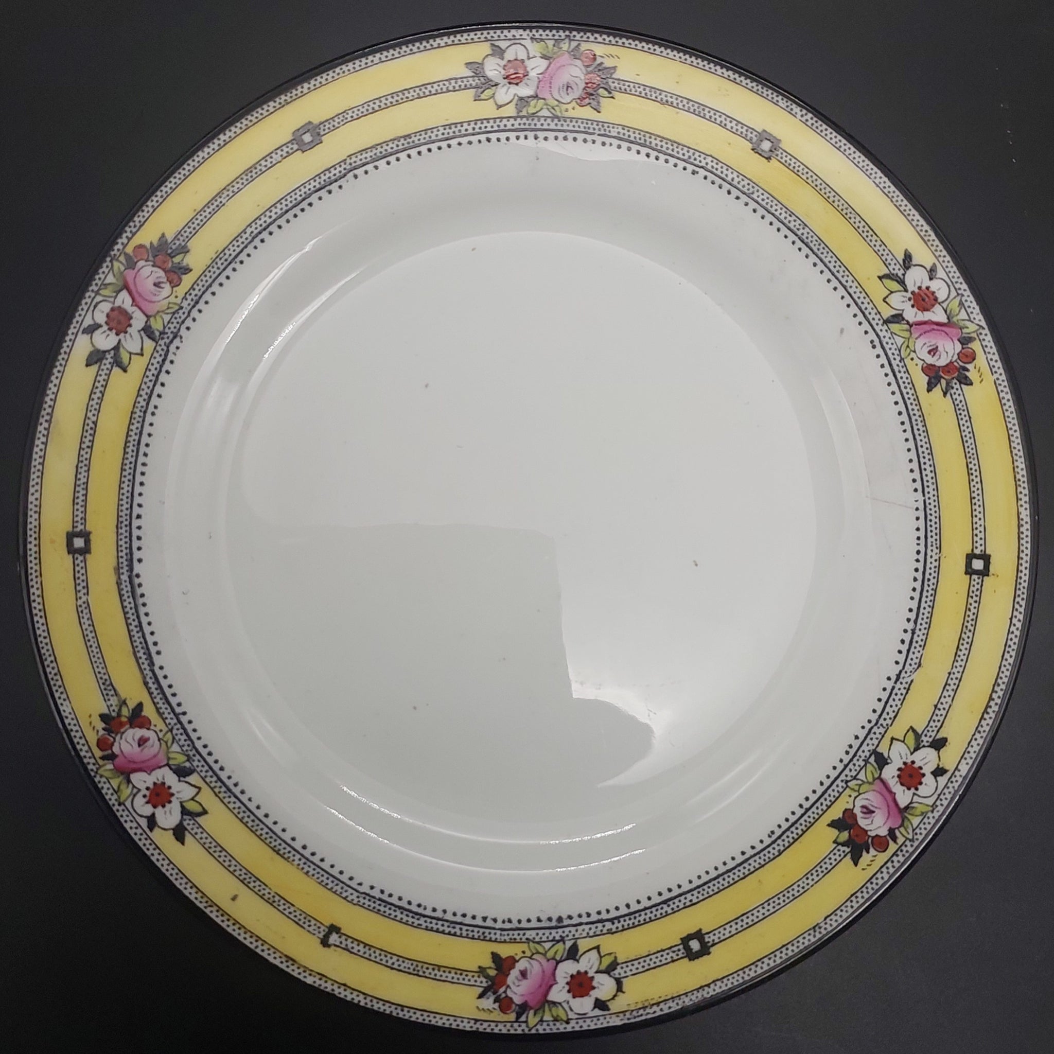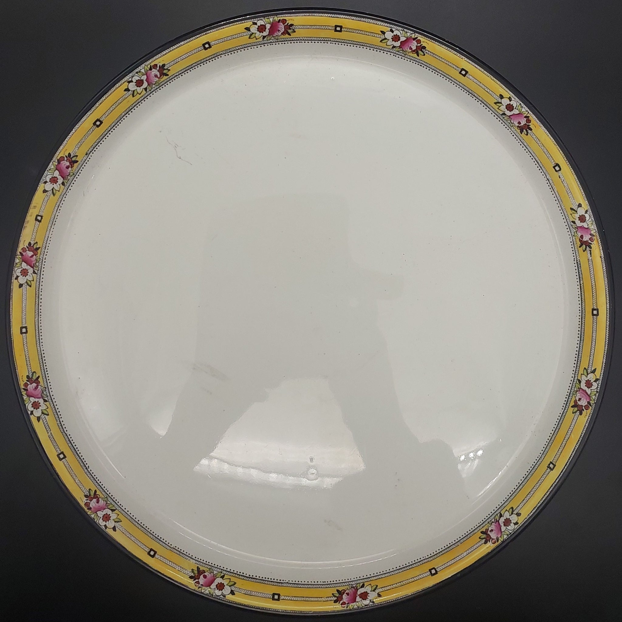 Crazing Clean crazing on cake plate, with four small patches of light grey staining