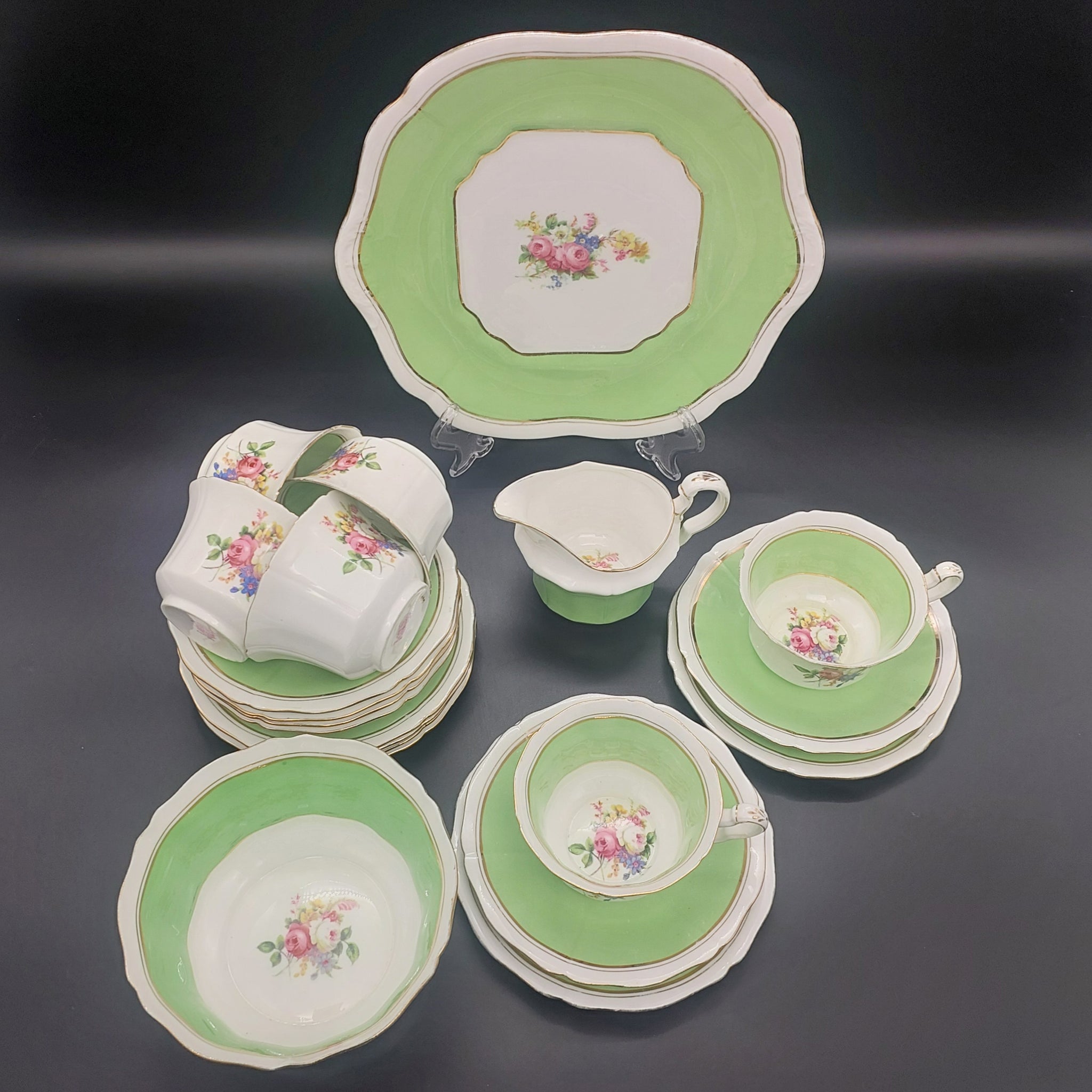 E Hughes & Co Paladin - Floral Spray with Green Band - 21-piece Tea Set