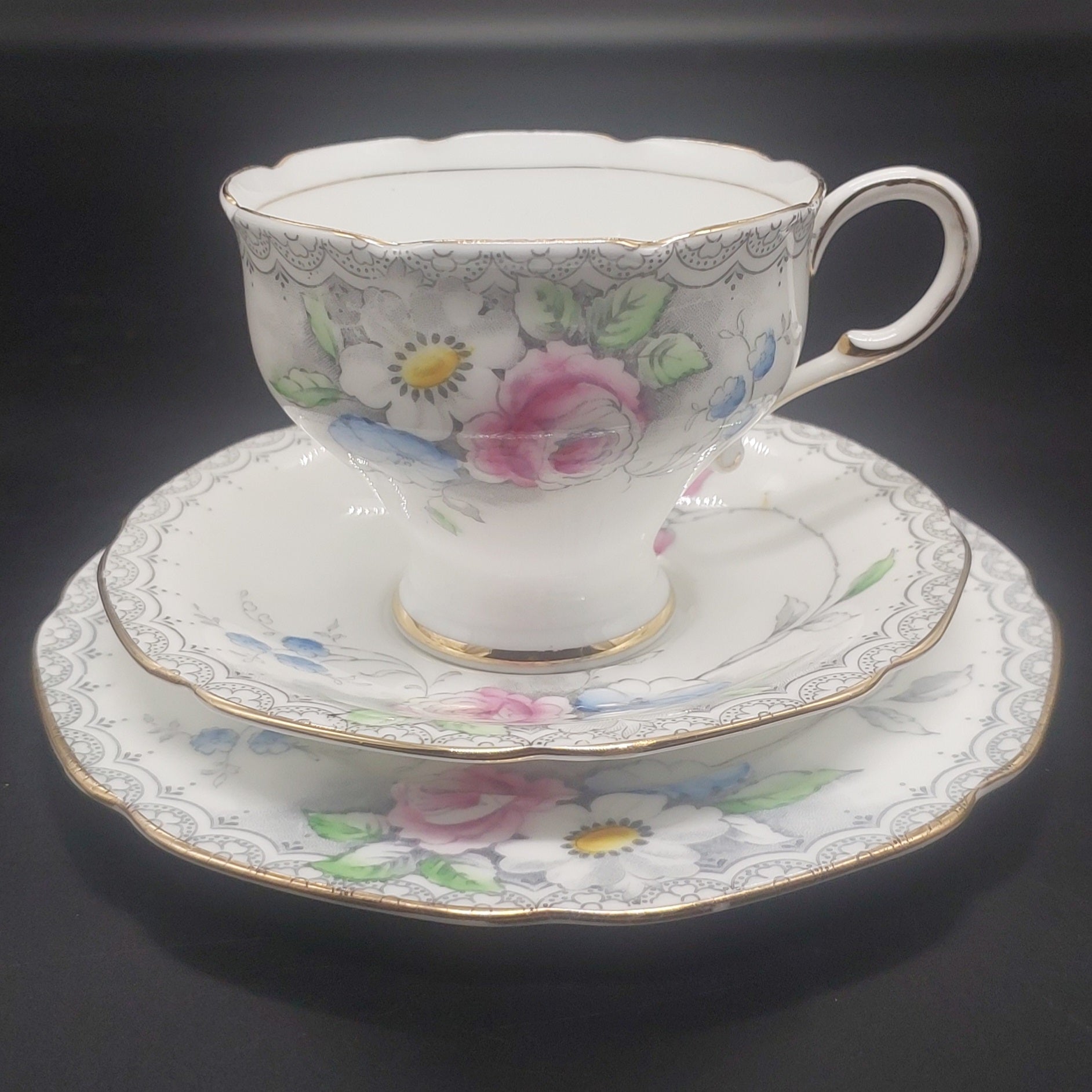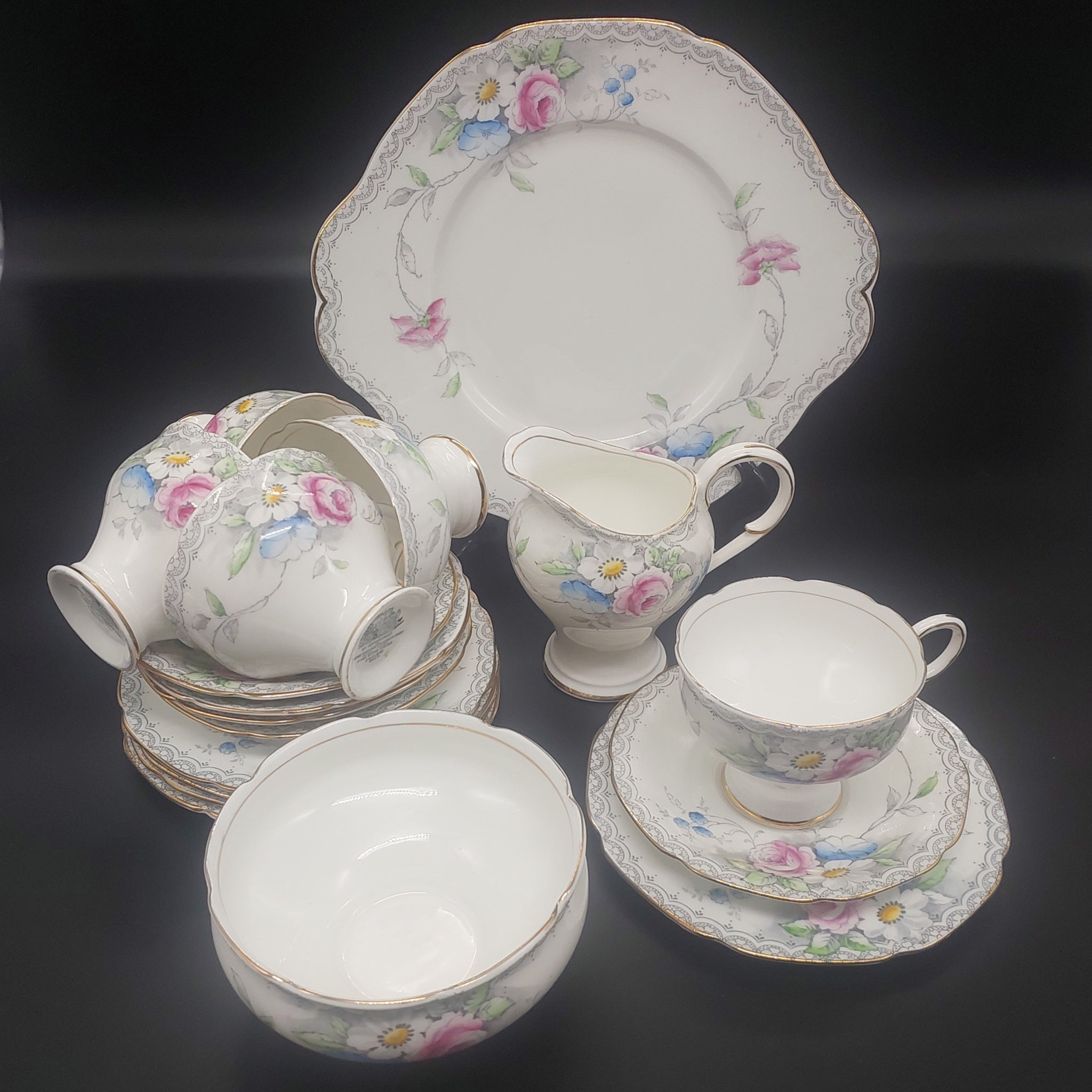 Paragon - White, Blue and Pink Flowers, X3045 - 18-piece Tea Set