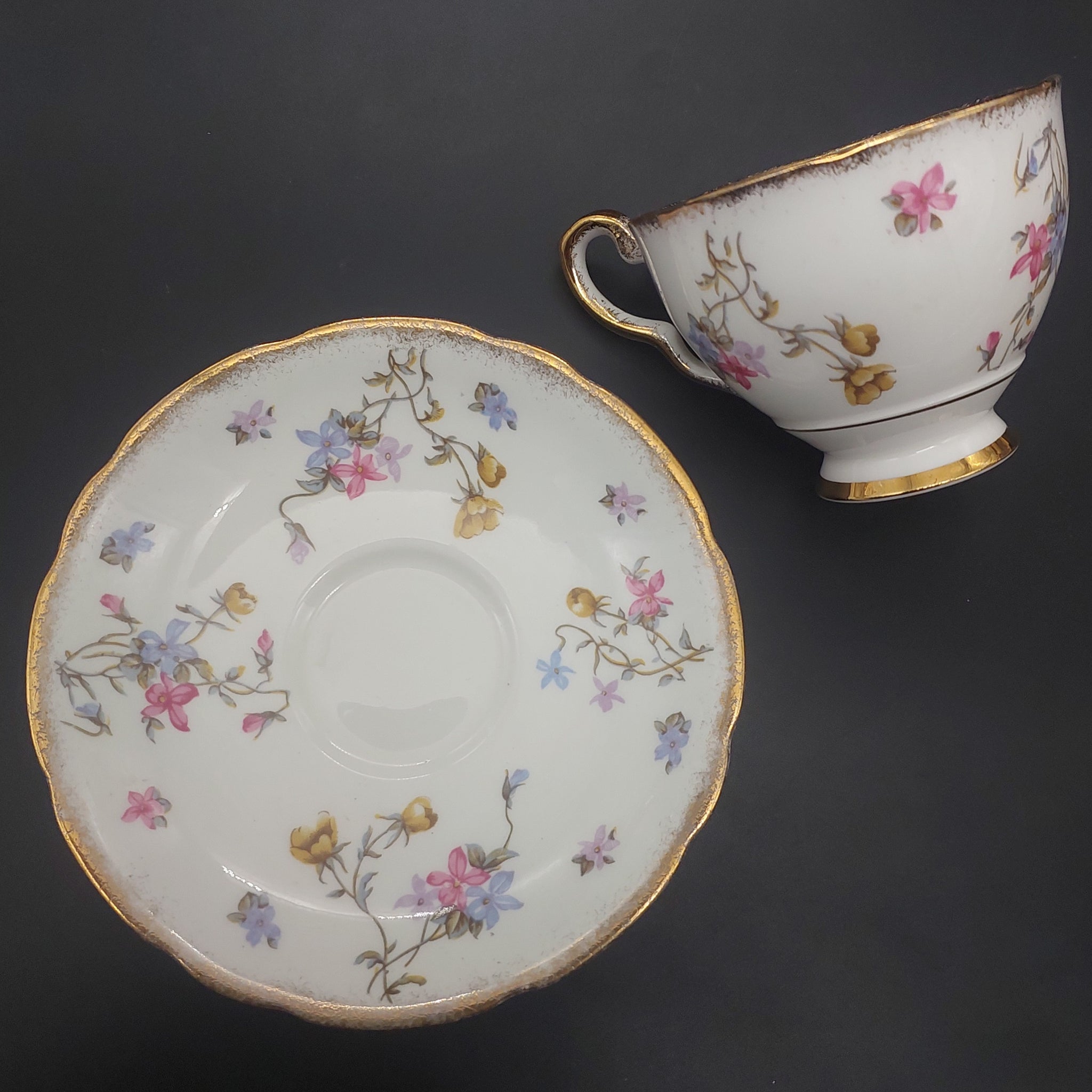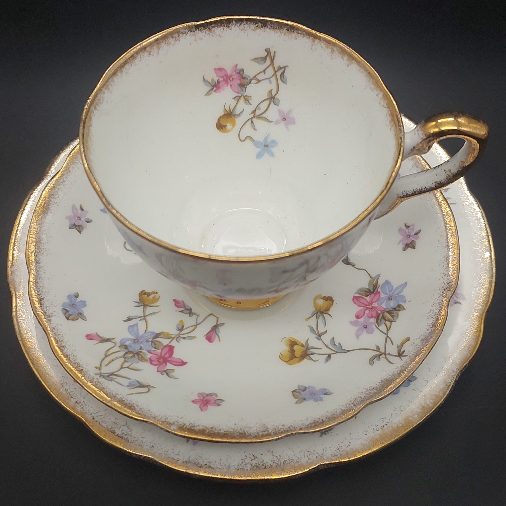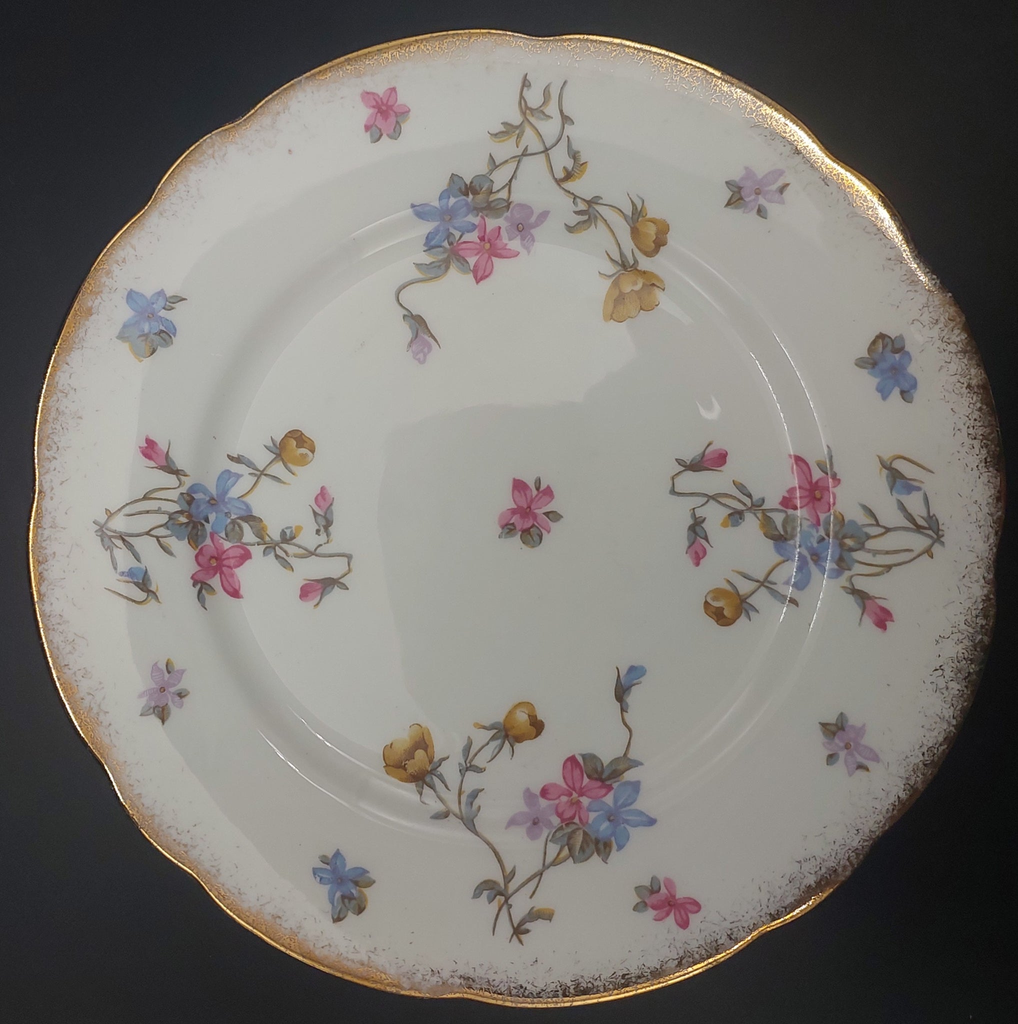 Gilding Very good. Brushed gold rim on all items, apart from 1 side plate, which has a gold central band and plain gold rim.