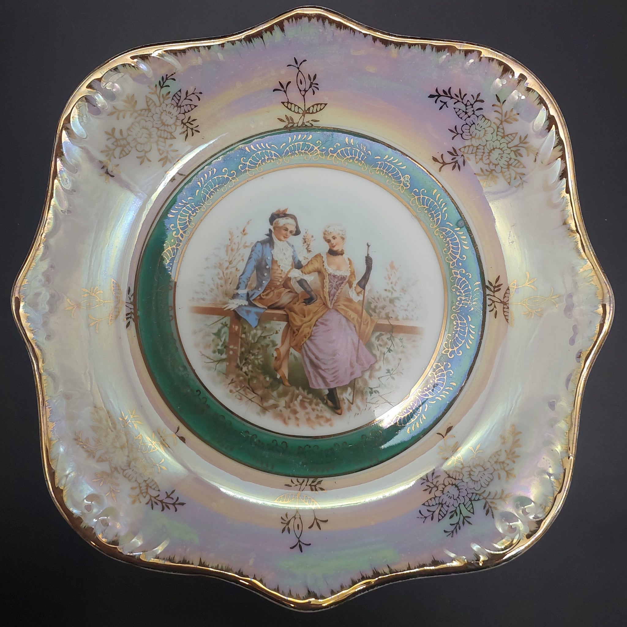 Japanese-made - Courting Couple, Pearl Lustre - Dish