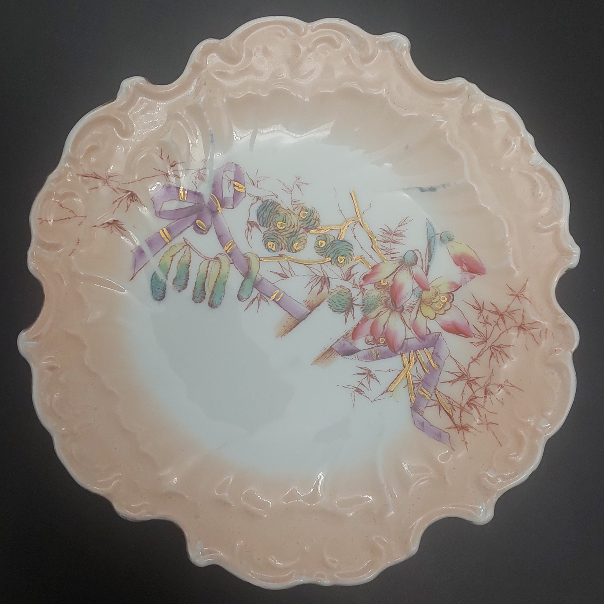 Vintage - Pink Flowers, Purple Ribbon, Blush Rim - Side Plate