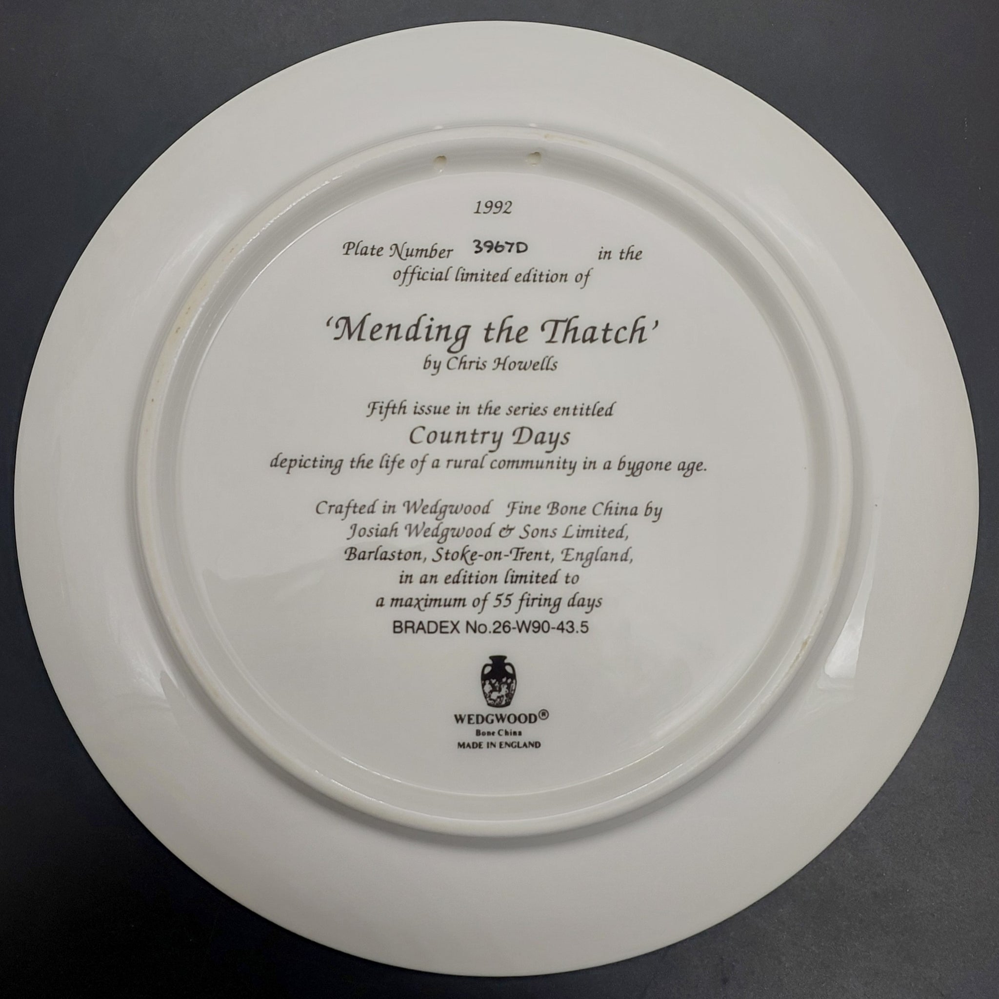 Wedgwood - Country Days Series, No 5 Mending the Thatch - Display Plate